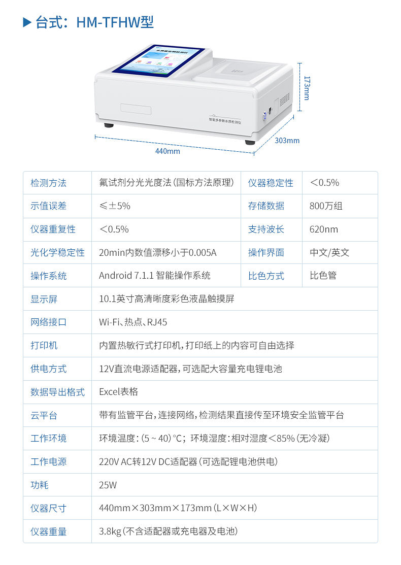 仪器将复杂的实验室分析流程集成机身中,操作简捷,其性能符合国家标准方法要求,适用于饮用水安全筛查、环境水体巡查、工业废水排放监控及应急检测等多种场景,是保障用水安全、实现高效现场管控的得力工具。