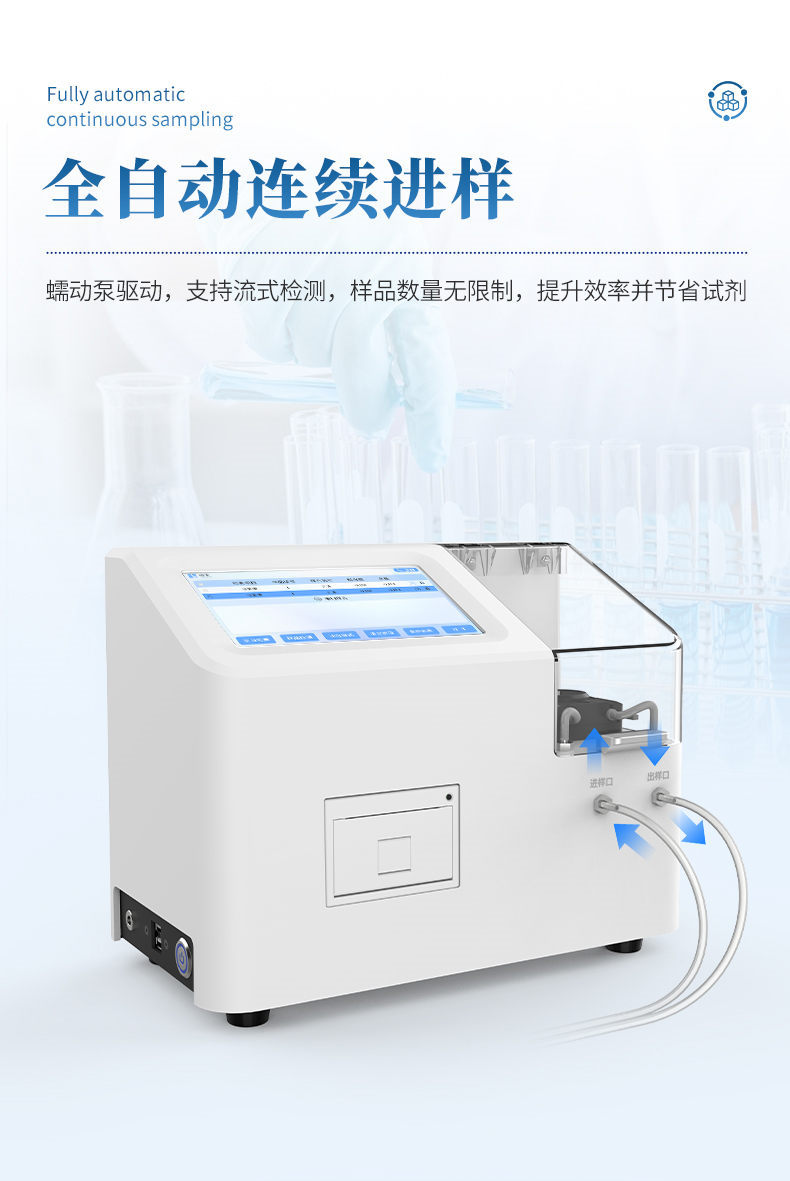 2、*采用蠕动泵连续自动进样,流式检测不受样品数限制,可连续多样品测试,并且节省试剂耗材;