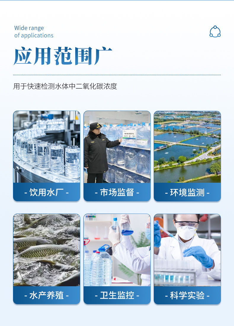 广泛应用于环境监测领域,水产养殖领域,饮用水与水处理领域,科研与教学领域的二氧化碳检测分析。