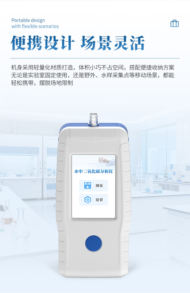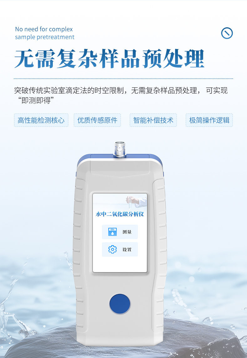 2、★测量快速,效率更高:搭载高性能检测核心,启动后无需长时间等待,能快速完成水中二氧化碳浓度采集与分析,短时间内即可输出结果,大幅提升水样检测效率,适配批量样本或紧急监测需求。